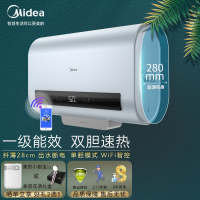 美的(Midea)50升电热水器3200W双胆速热 纤薄扁桶小体积安全零电洗智能家电APP控制银色 榭湖银 50升