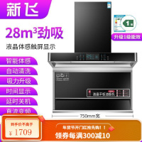 新飞油烟机7字型抽油烟机家用厨房大吸力顶侧双吸油烟机自动清洗 顶配750宽八键智能变频+自动清洗 全国联保安装