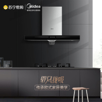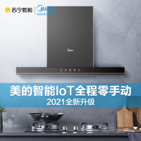 美的大吸力抽油烟机厨房家用自清洗顶吸烟机智能家电 黑色