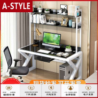 苏宁放心购台式电脑桌书桌简约家用带书架一体钢化玻璃简易办公学习写字桌子A-STYLE家具