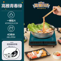 美的电磁炉家用智能小型火锅炒菜锅一体迷你大功率电池炉套装 [青春绿]