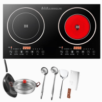 纳丽雅双头电磁炉双灶电陶炉嵌入式台式智能一体灶台家用_电磁炉电陶炉6件套锅具