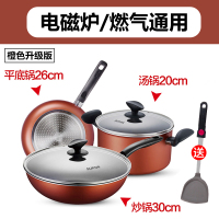 橙色3件套[电磁炉/燃煤气通用] 升级 苏泊尔不粘锅三件套装锅具全套家用不沾平底炒锅汤锅电磁炉燃气灶