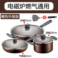 褐色3件套[电磁炉/燃煤气可用] 经典款 苏泊尔不粘锅三件套装锅具全套家用不沾平底炒锅汤锅电磁炉燃气灶