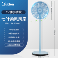 美的电风扇落地扇家用节能摇头大风立式电扇卧室宿舍 12寸机械7叶蓝色