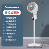 长虹空气循环扇电风扇家用落地扇遥控立式涡轮台式宿舍电扇 白色遥控加高款★自动摇头★15H定时