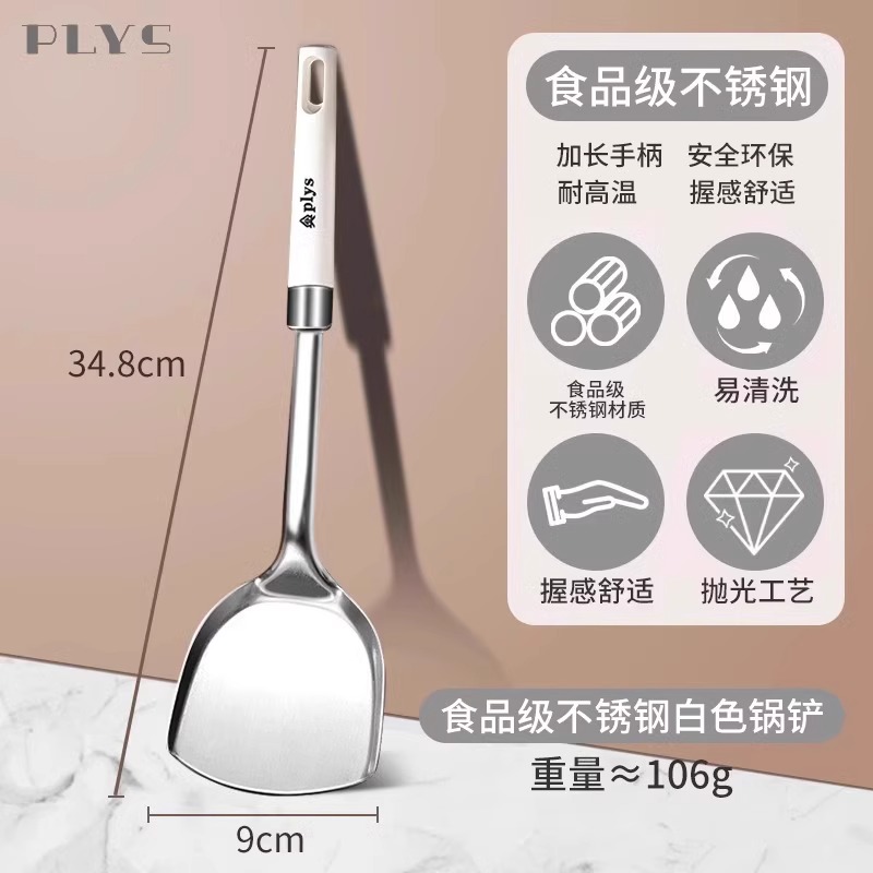 不锈钢汤勺大号盛汤家用高档精致粥勺子炒菜锅铲食品级厨具W8169 不锈钢-锅铲【单个】