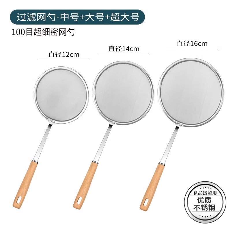 打沫勺304不锈钢漏勺厨房专用豆浆过滤网筛超细隔油勺8177 13_【中号+大号+超大号】304不锈钢漏勺