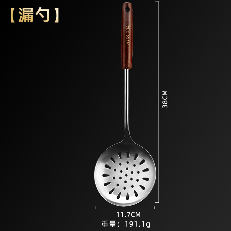 德国304不锈钢加厚锅铲榉木柄厨房炒菜铲子汤勺漏勺8177 【304钢】木柄防烫-漏勺