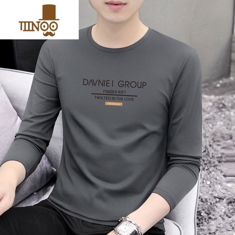 YANXU冰丝长袖圆领T恤男2022秋新款印花打底衫宽松百搭体恤衫 3XL建议130-140斤 18170碳灰