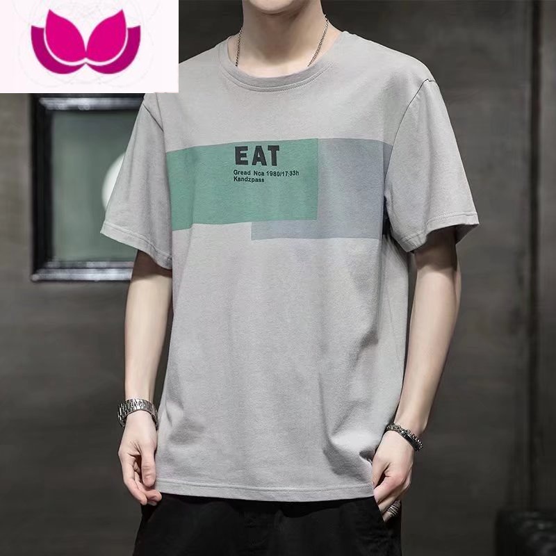 七斓短袖t恤男士2023新款夏季宽松百搭上衣服圆领半袖体恤衫潮牌男装 L建议95-110斤 M02浅灰色