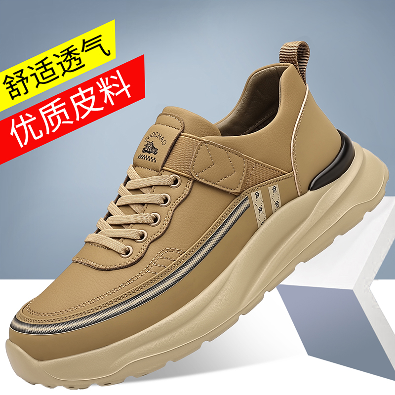 迪罗尼卡冬季男士软皮休闲皮鞋男加绒加厚保暖棉鞋软底防滑增高男鞋 棕色 42码