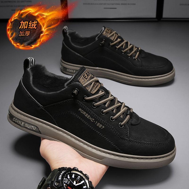 男鞋秋冬季2023新款防寒保暖板鞋潮流百搭鞋子男防滑耐磨小白潮鞋 黑色加绒 41