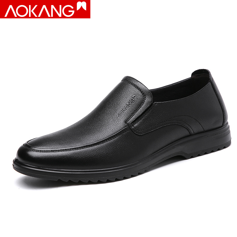 奥康男鞋春秋季商务休闲鞋男低帮透气中年套脚皮鞋爸爸鞋 黑色 40
