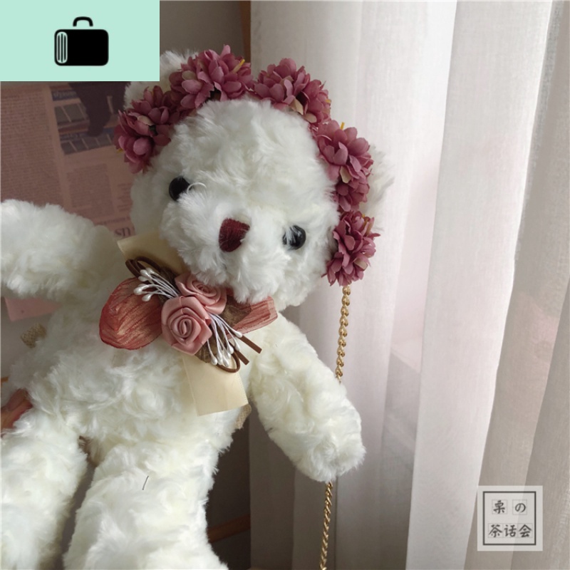 日系原宿少女ins小熊软妹斜挎包lolita萝莉lo娘可爱玩偶手机包包NEWLAKE 白色花环小熊