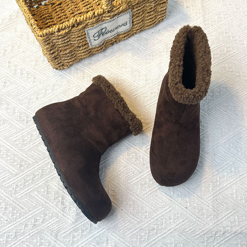 羊羔毛保暖雪地靴女冬季新款加厚加绒短靴休闲百搭复古靴子女 深咖 39