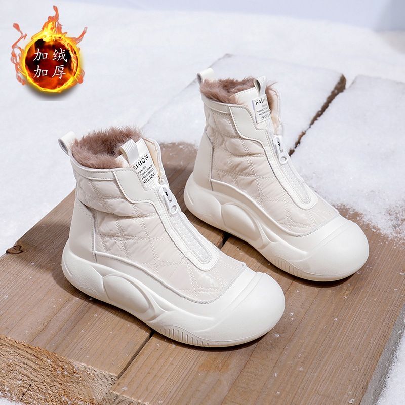 女鞋高帮鞋加绒保暖棉鞋冬季新款厚底板鞋休闲雪地靴女_4 米白 39