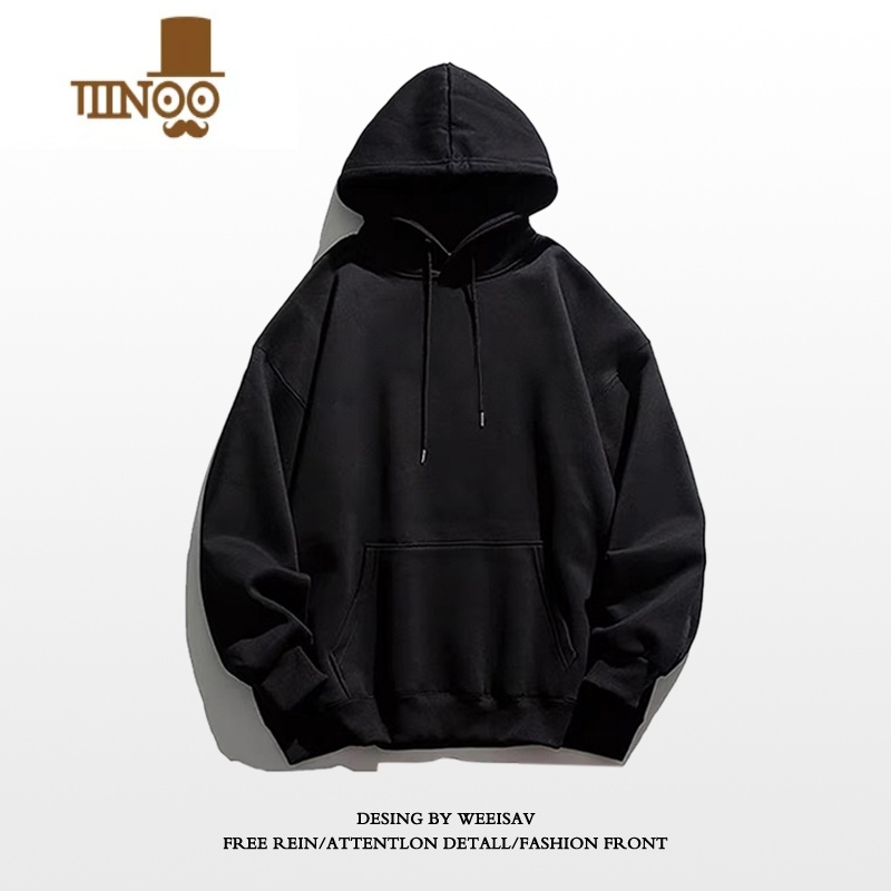 YANXU美式复古加绒纯色卫衣男款小众设计感hiphop潮牌帽衫外套h牌 3XL 黑色优质推荐款)