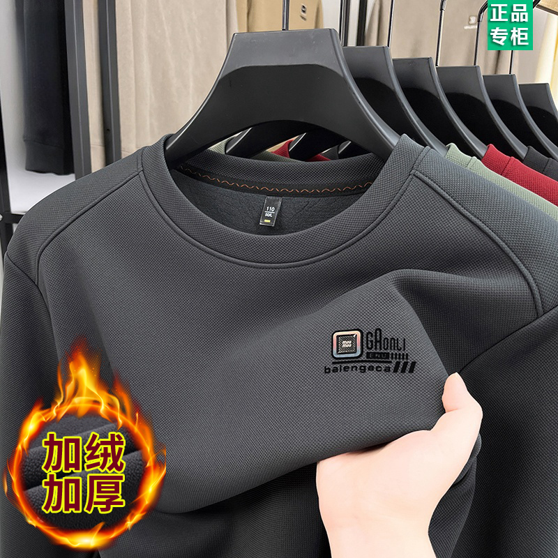 啄木鸟高档卫衣男加绒加厚冬季新款圆领长袖t恤中年男士保暖上绒 190/4XL建议180-210斤 加绒加厚8722灰色
