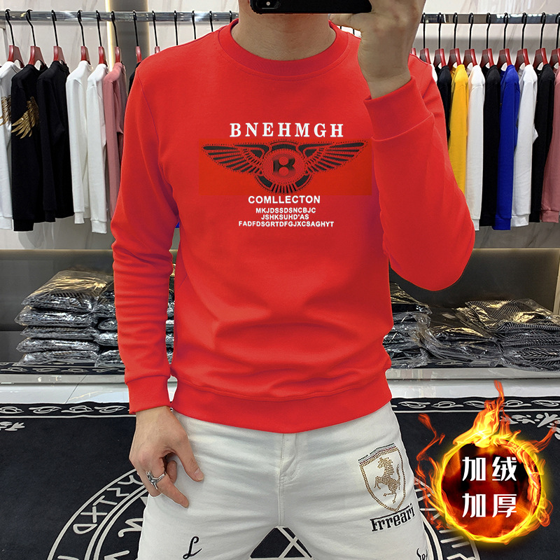 自营 冬季新款加绒加厚卫衣男上衣圆领长袖打底衫欧货保暖秋衣潮64_335 M 【加绒加厚】Y060卫衣款大B翅膀红色