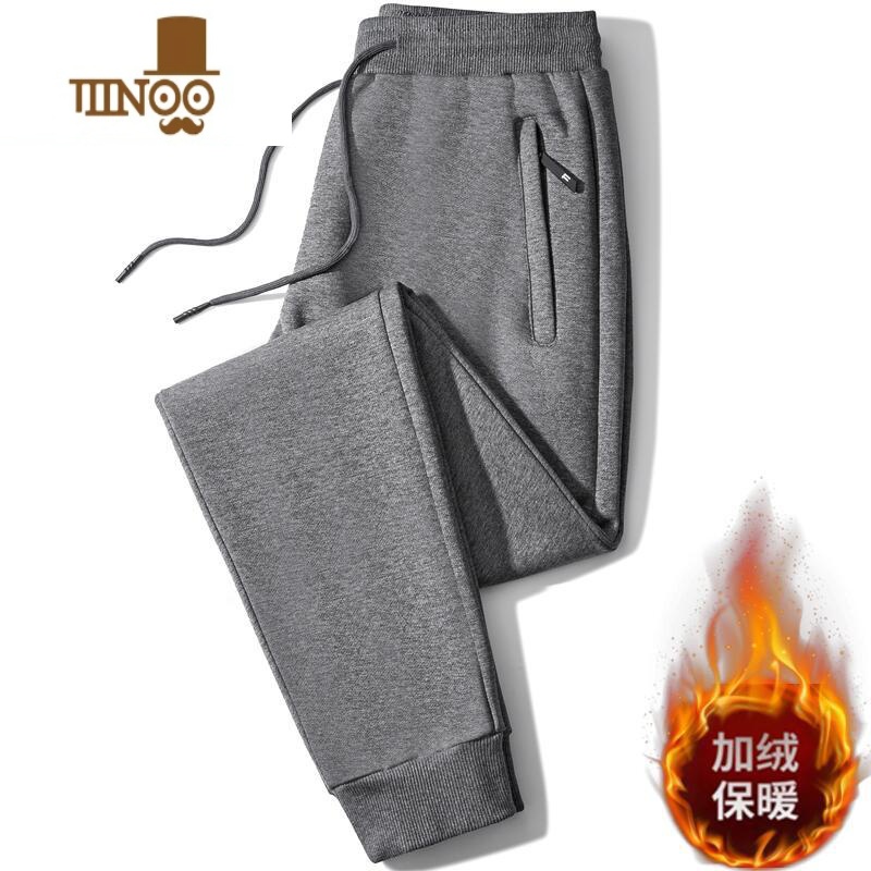 YANXU加绒裤男外穿潮流纯色百搭宽松口袋拉链运动男士休闲卫裤子 M建议80-95斤 深灰色束脚加绒款
