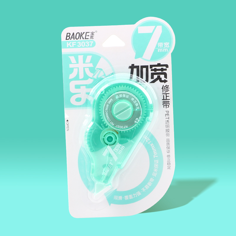 宝克(BAOKE)KF3037 米乐系列加宽修正带 PET透明膜袋 柔韧带芯不易断带 12m 1支/卡 2卡 绿色2支