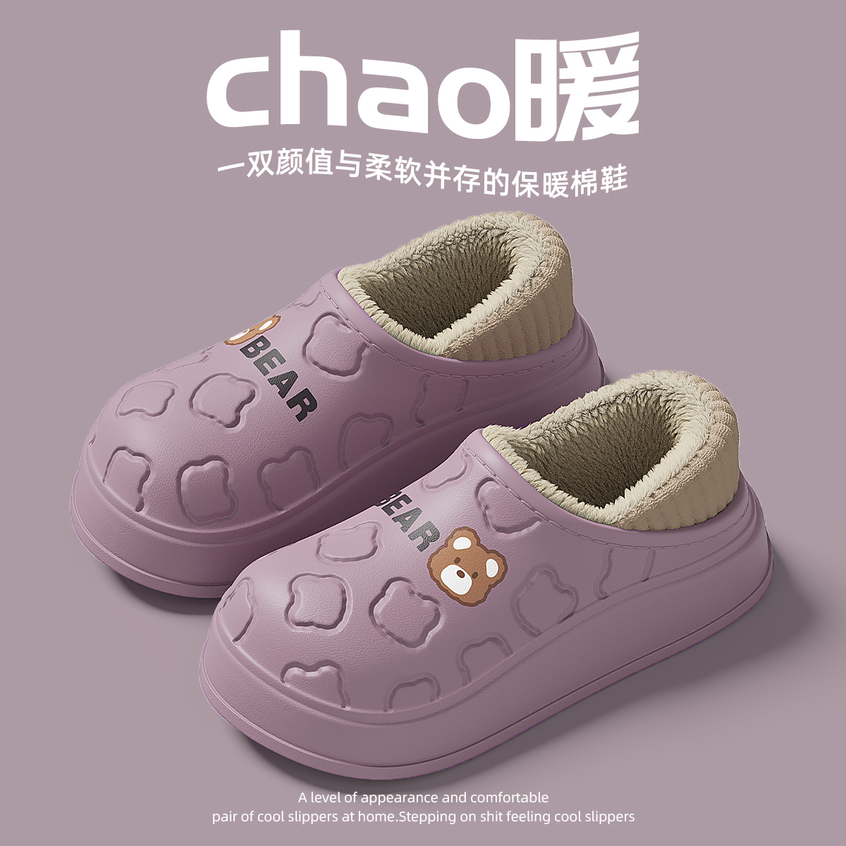 安尚芬 M-6459布艺女 深紫色【小熊头】 36-37