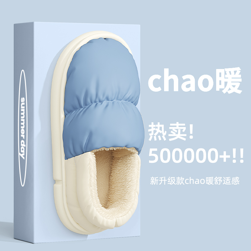 棉拖鞋女士踩屎感包跟秋冬季防水室内家居防滑月子加绒保暖外穿 浅蓝【羽绒布防水】 42-43【适合41-42脚穿】