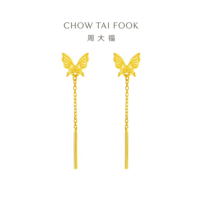 周大福七夕 灵动仙气 流苏蝴蝶 足金黄金耳环耳饰(工费:220计价)EOF1051 足金约1.65g