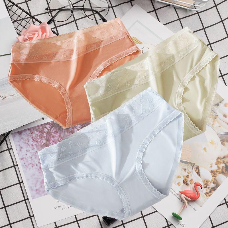 内裤女冰丝棉裸感夏季薄款蕾丝性感学生中腰少女透气_974 M码(80-100斤) 珊瑚红+浅绿色+浅蓝色