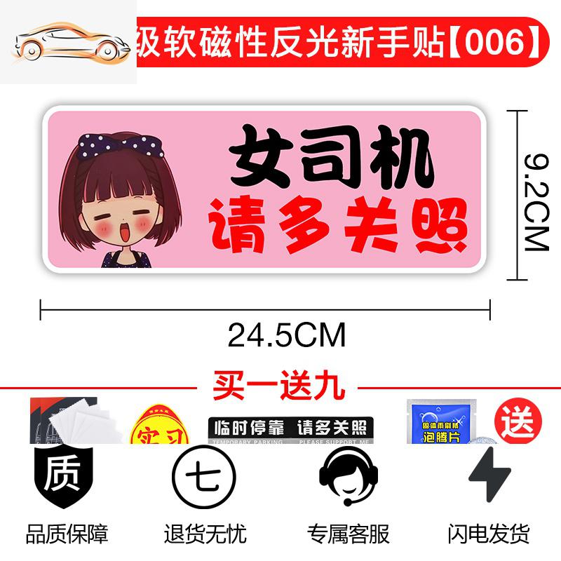 汽车实习车贴磁吸女司机新手贴纸上路创意车用磁性标志反光文字标汽车车贴_102 升级软磁反光新手帖【006】买一送九