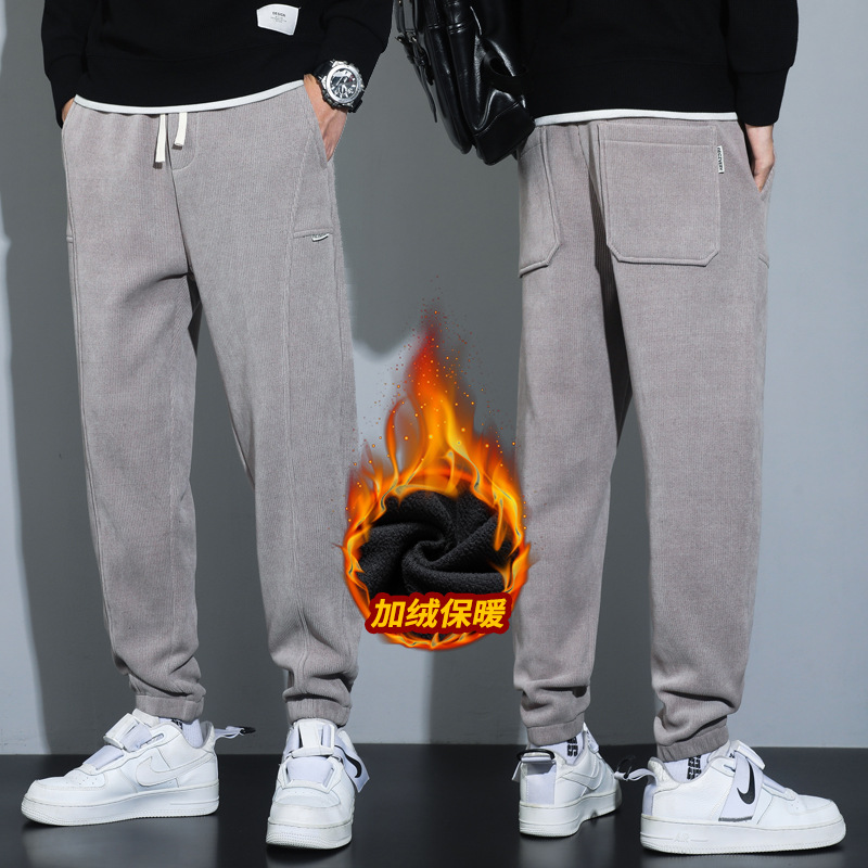 冬季裤子男百搭帅气潮流男裤内里加绒品质舒适束脚休闲九分裤男款 3XL(175斤) 856浅灰加绒