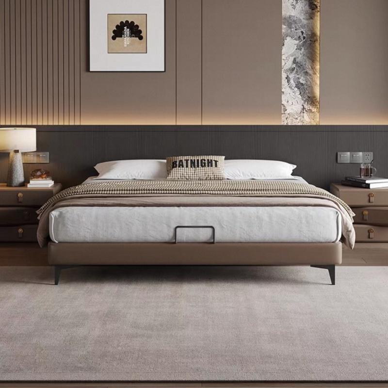 【苏宁直营】劳伦斯主次卧床全实心实木头层牛皮双人床1.5米1.8米软靠包床 1.5*2.0米【9D静音钢木床板】 零压护脊舒眠床垫【软硬适中睡感】+2柜