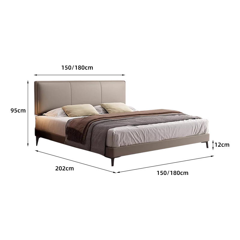 极窄豆腐块全实心实木头层牛皮主卧大床软靠包床现代简约轻奢小户型省空间 1.5*2.0米【升级版5D床板】 环保椰棕床垫-【偏硬睡感】+2柜