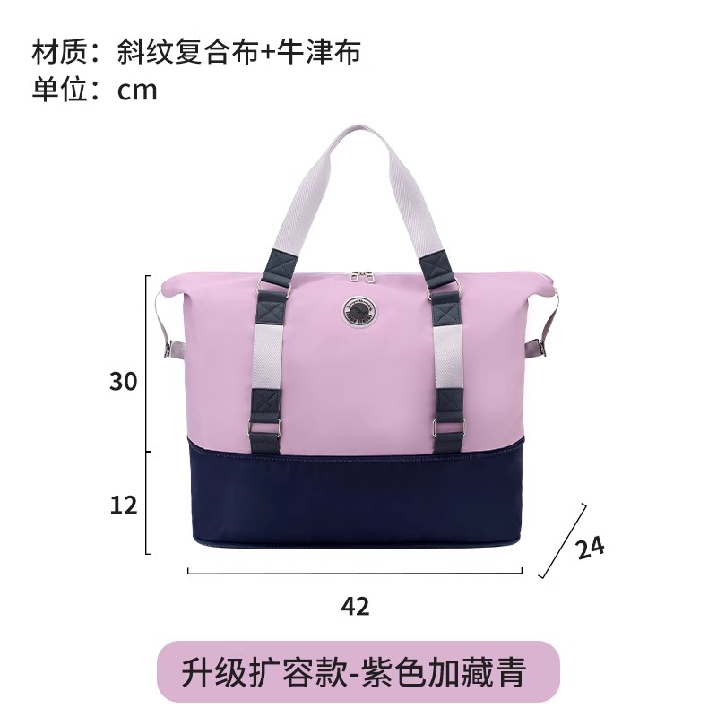 旅行包短途女轻便大容量手提出差登机行李袋旅游健身待产包收纳袋 藏青加紫色