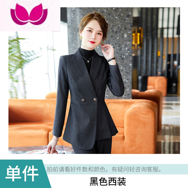 七斓西装外套女气质女范职业装西服套装酒店前台工作服正装 3XL 2212黑色西装