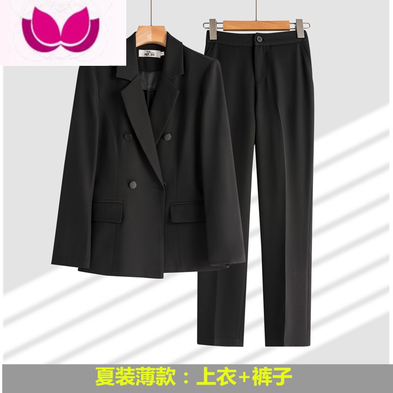 七斓教师面试西装套装女大学生职业答辩正装女时尚气质西服工作气 2XL130-140斤 黑色夏装薄款外套+裤子