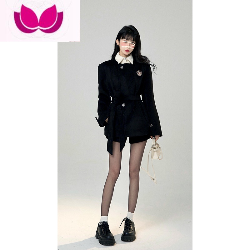 七斓芭比姨假西装外套女春季2023新款百搭黑色rose穿搭学春款季西 S 黑色冬款-夹棉毛呢现货