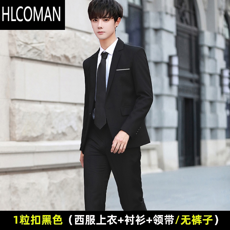 HLCOMAN正装西服套装男修身帅气韩版商务外套黑色学生休闲伴郎结婚小西服 3XL 1粒扣黑西服+衬衫+领带