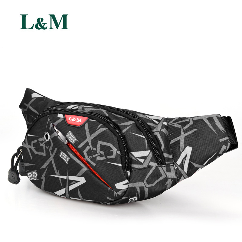 L&M腰包男手机包钱包多功能男士腰包 黑白
