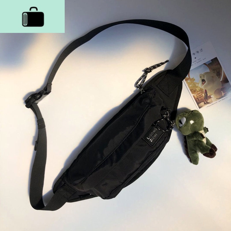 日系潮牌胸包男士运动休闲腰包潮流斜挎包男生挎包黑色单肩小背包NEWLAKE 黑色+恐龙挂件003