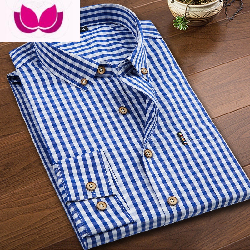 虎都 男时尚舒适商务休闲长袖衬衫衬衣EH021073 白底紫黑格 42