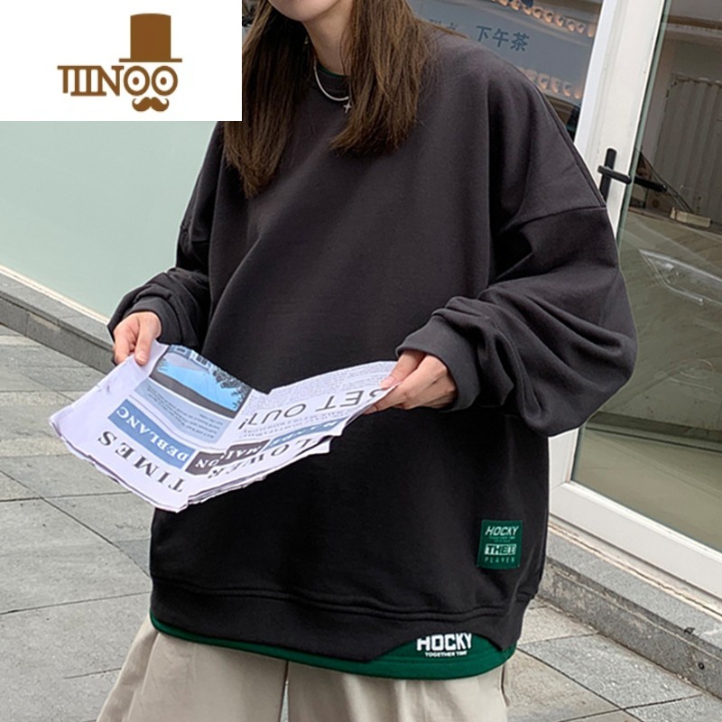 YANXU情侣假圆领卫衣男士春宽松潮牌2023新款美式男生上衣0 L 深灰色