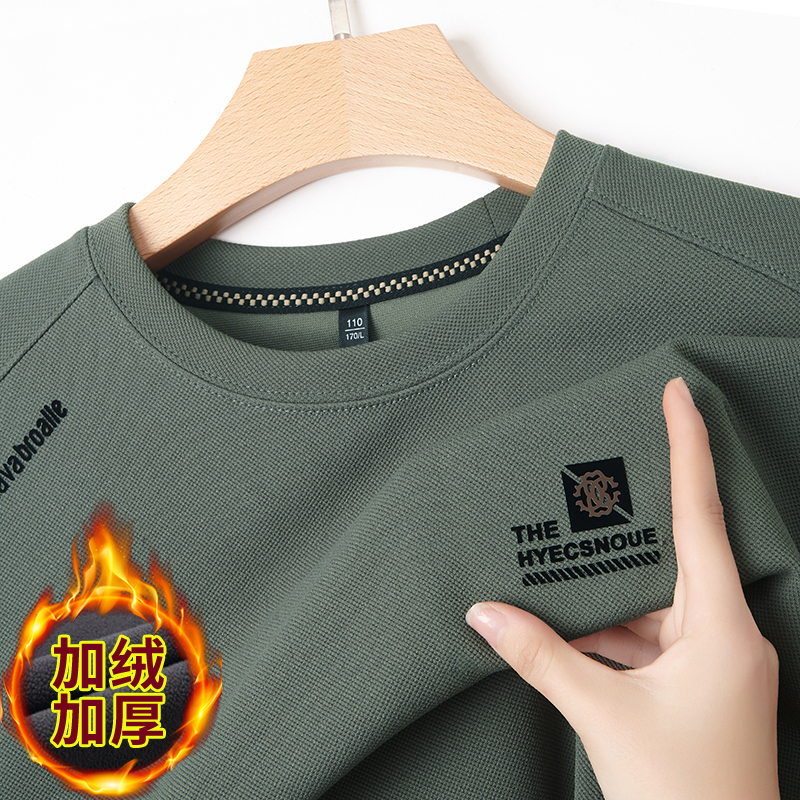 啄木鸟高档卫衣男加绒加厚冬季新款圆领长袖t恤中年男士保暖上绒 165/M建议90-120斤 加绒加厚7788绿色