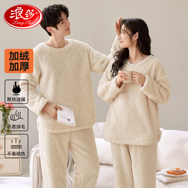 浪莎情侣睡衣男女士秋冬珊瑚绒加绒加厚家居服两件套可外穿卡通风睡衣 卡通熊 男XXXL 男XXXL 纯色款