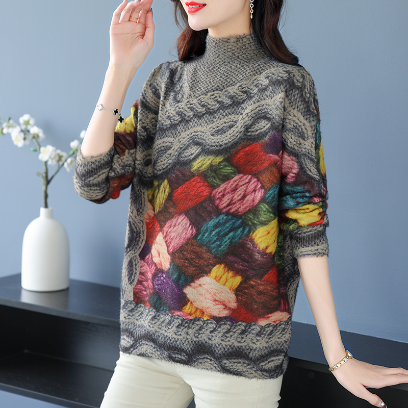 鄂尔多斯羊绒衫女士毛衣100%羊毛衫女秋冬宽松加大码针织打底衫遮肚水貂绒毛印花毛衣女秋冬2023新款加肥加大胖mm羊绒衫 麻花款如图 2XL