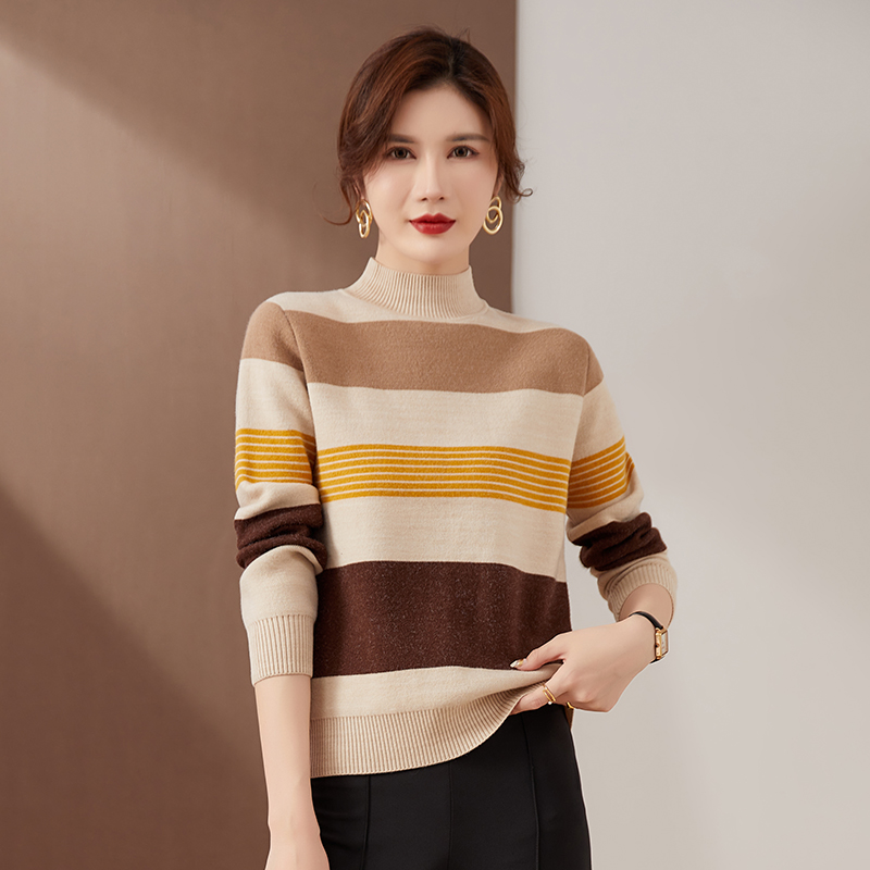 免费试穿鄂尔多斯羊绒衫女纯色打底衫针织羊毛衫女秋冬季中领加厚女士毛衣洋气内搭高领毛衣新款针织上衣服打底衫秋冬毛衣女 焦糖 3XL适合135-150斤