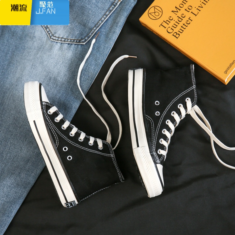 聚范高帮经典款帆布鞋夏季透气男鞋韩版潮流百搭黑色ins女板鞋潮 复古高帮-黑色旗舰品质款 35