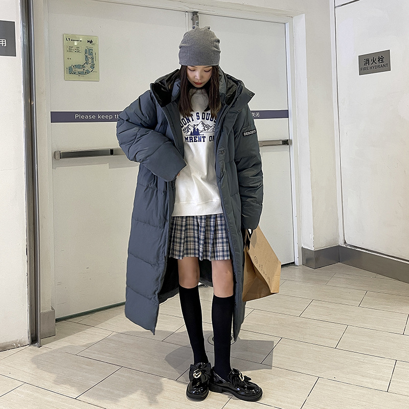 JPDUN男士羽绒服秋冬情侣同款长款过膝羽绒服男中戏女宽松休闲保暖外套女_257 M 215灰色女