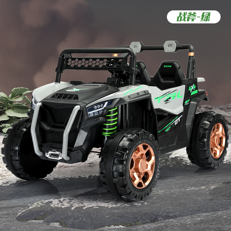 电动童车809四驱动儿童电动汽车2-10岁四轮电瓶车大电瓶带音乐可摇摆 绿色+12v7